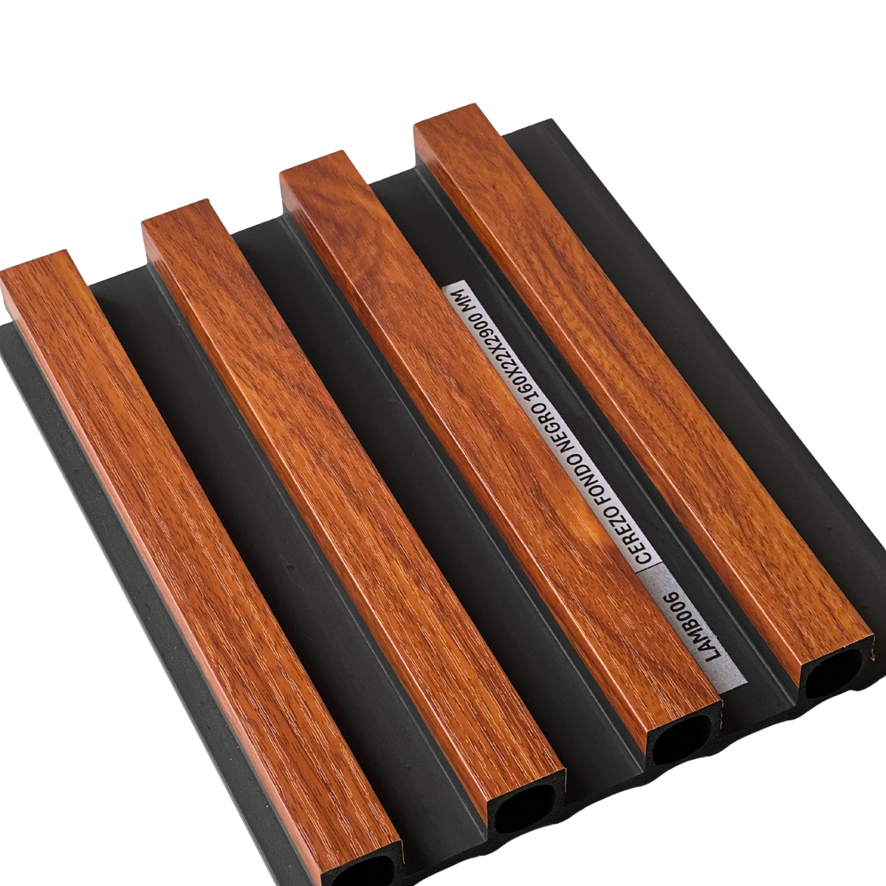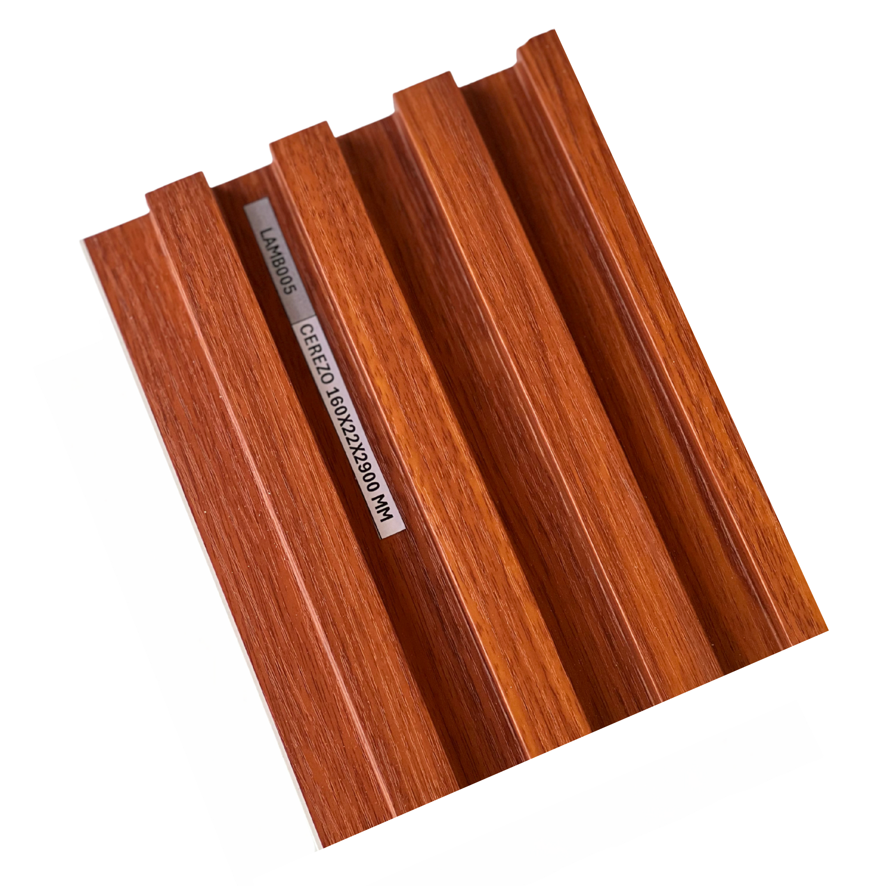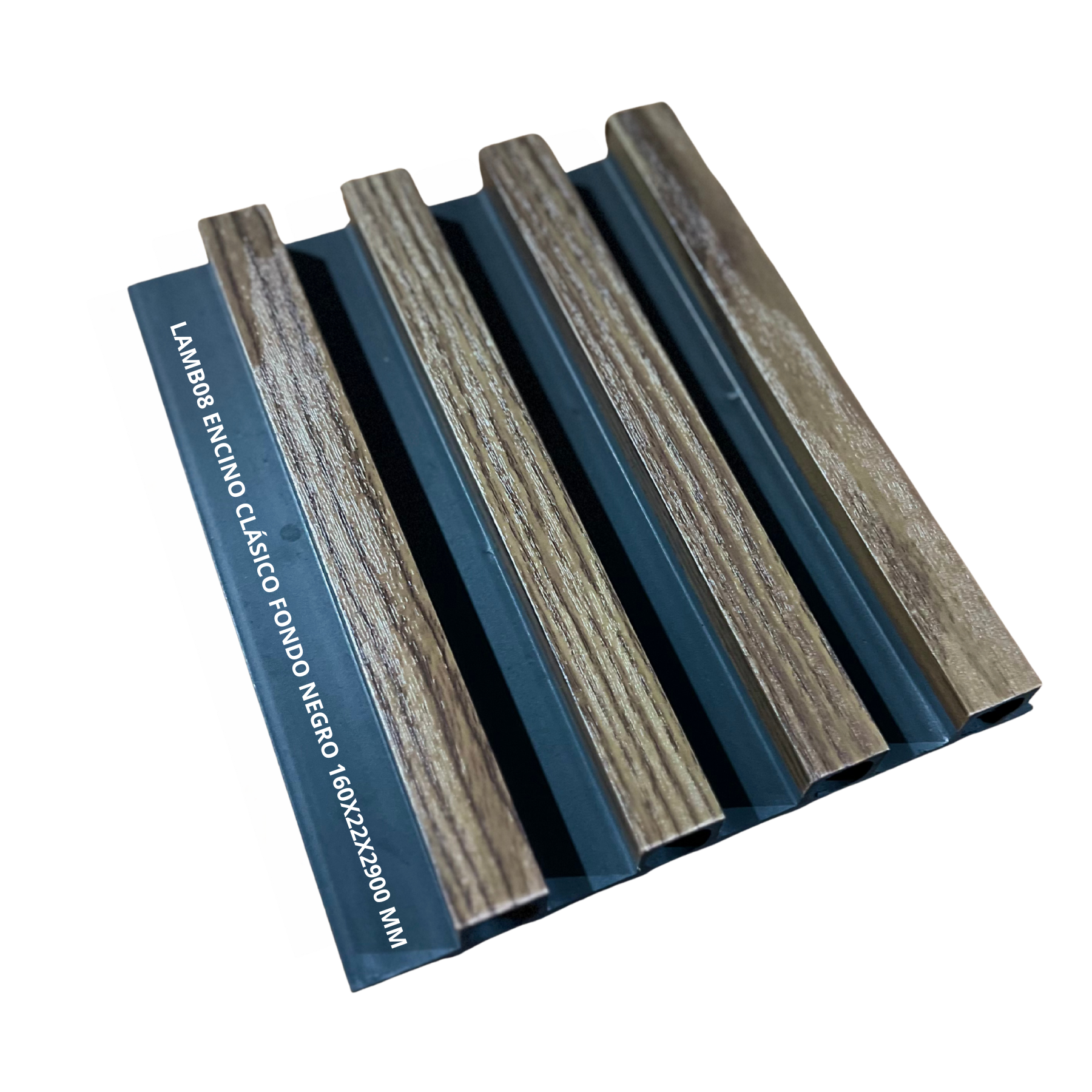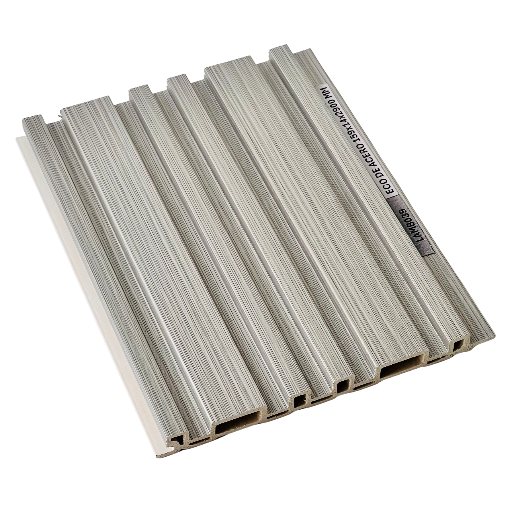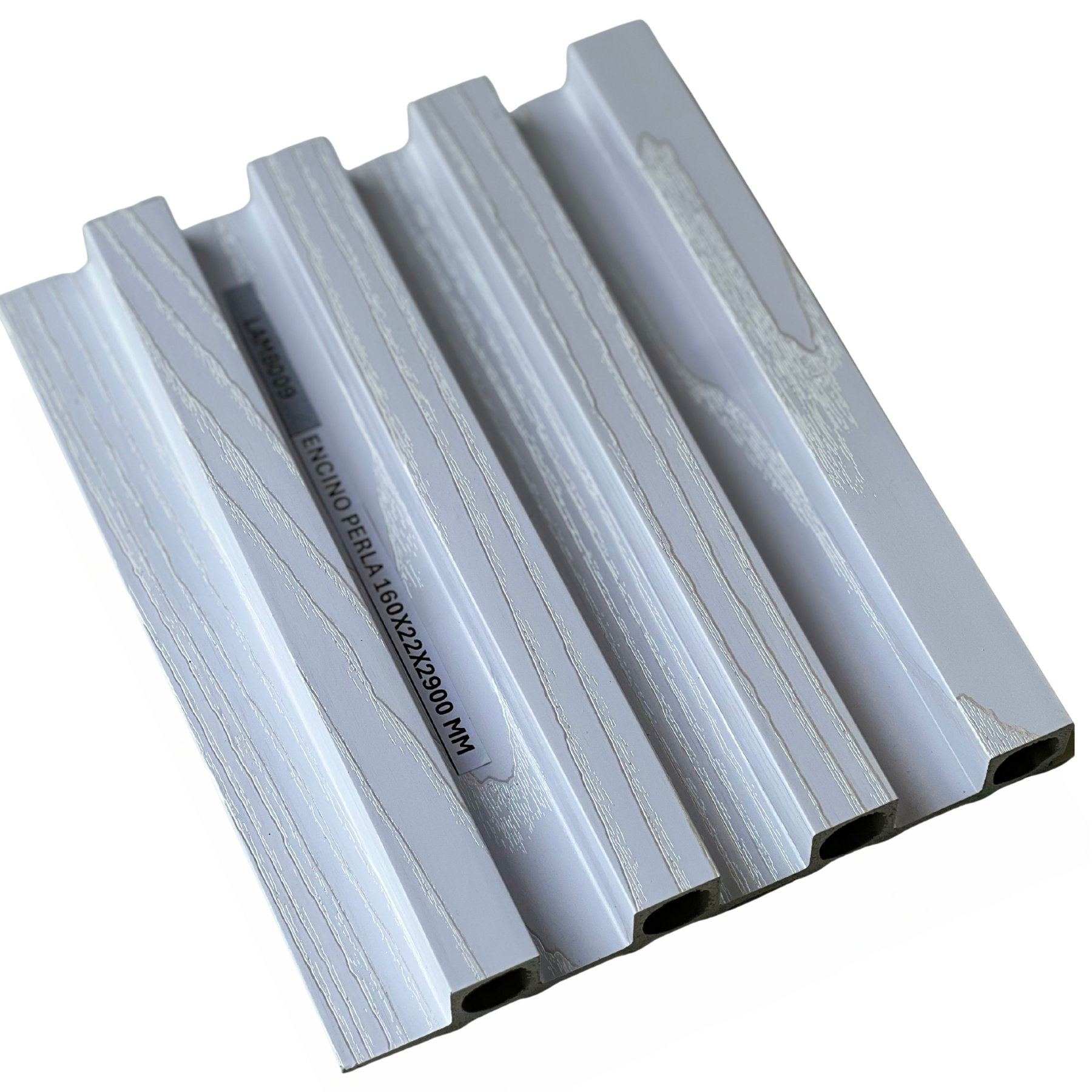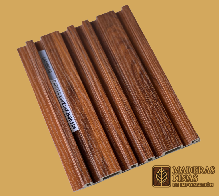 Este material combina la belleza de la madera natural con la resistencia del plástico, logrando acabados elegantes, resistentes a la humedad y de mínimo mantenimiento.