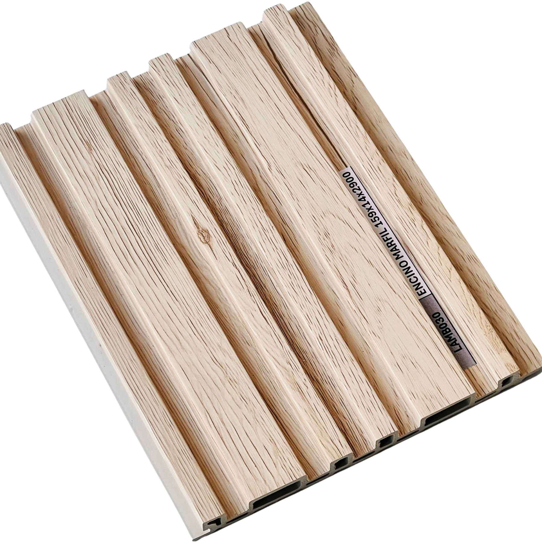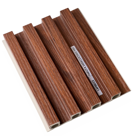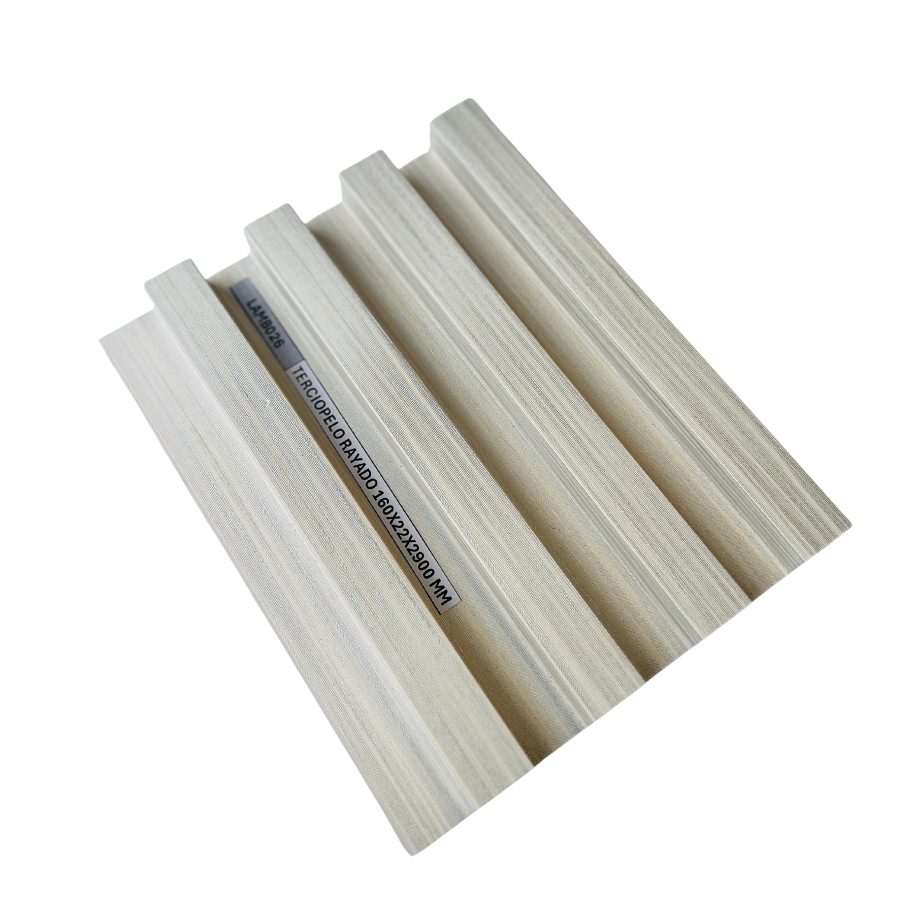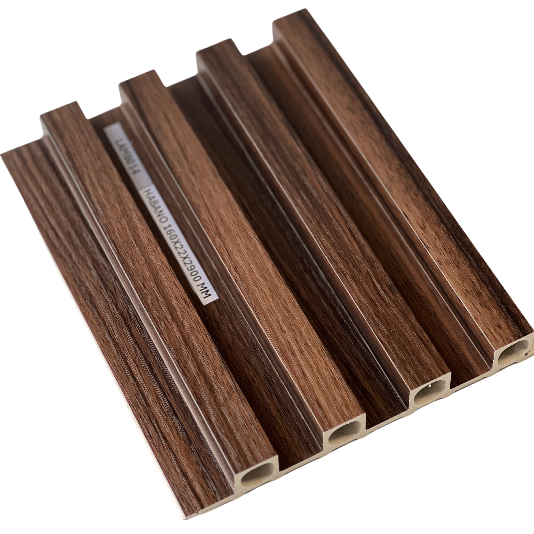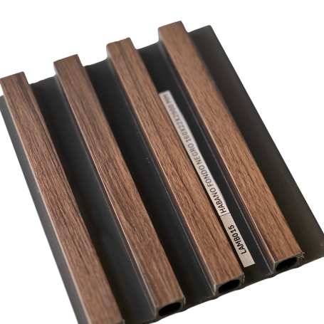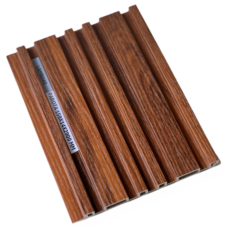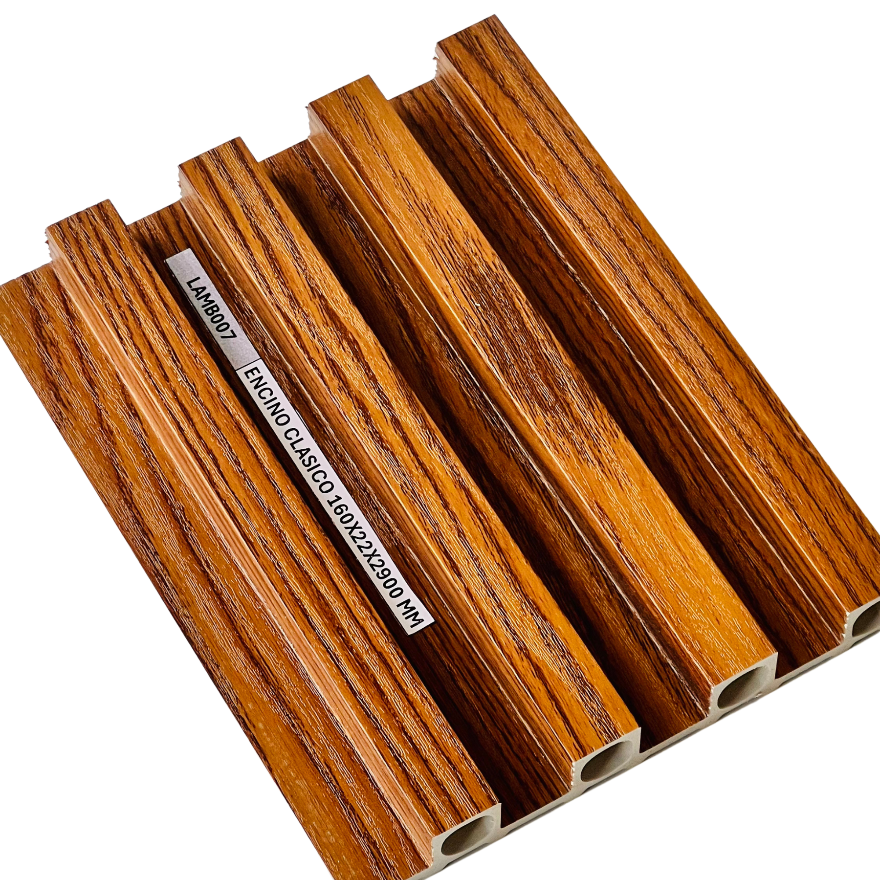 Este material combina la belleza de la madera natural con la resistencia del plástico, logrando acabados elegantes, resistentes a la humedad y de mínimo mantenimiento.